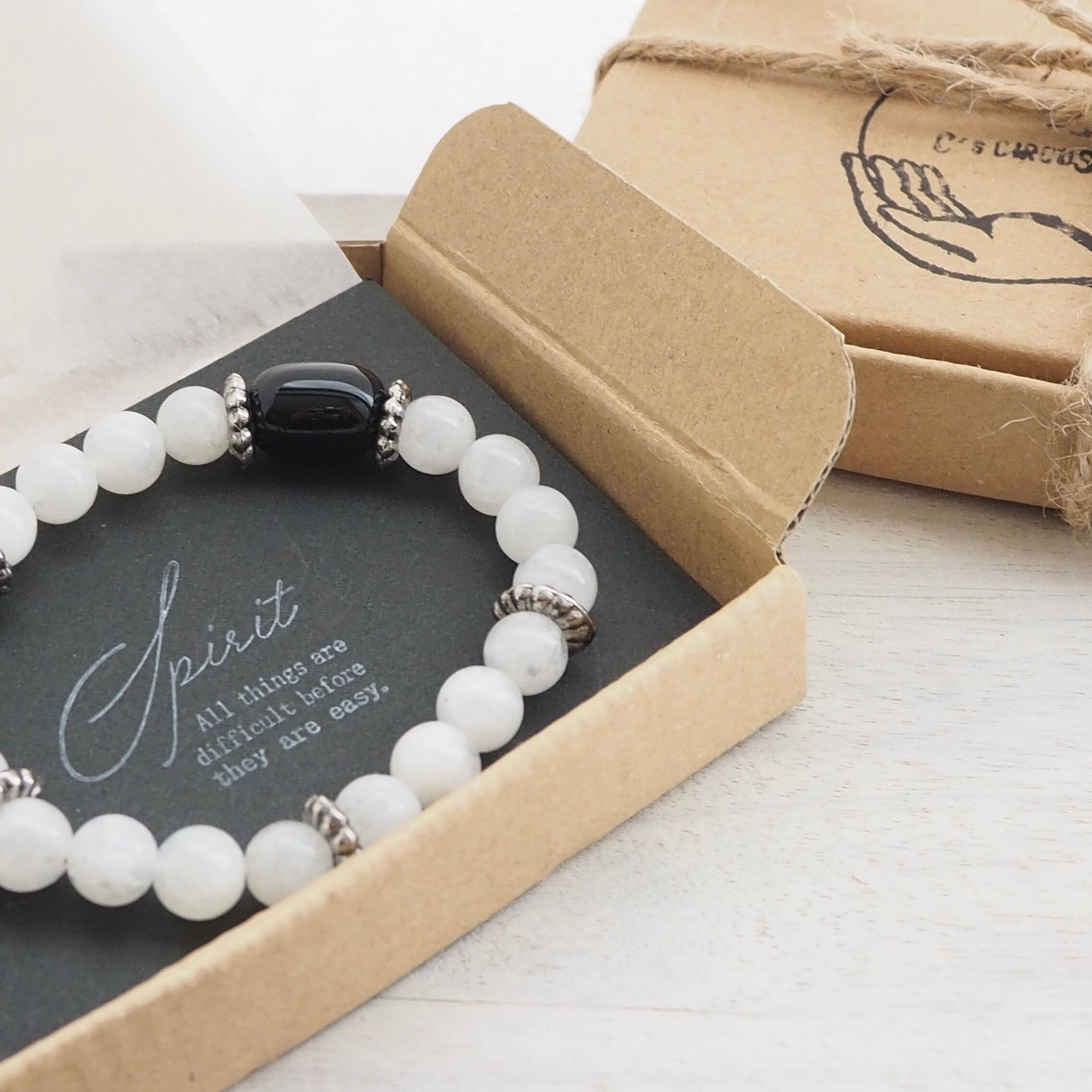 Positive mind &relax✴︎ 憂鬱な気持ちをポジティブに オニキス&ムーンストーン パワーストーン 天然石 ブレスレット | 幸せを呼ぶアクセサリー・癒しのシンプルアクセサリー | C's Circus