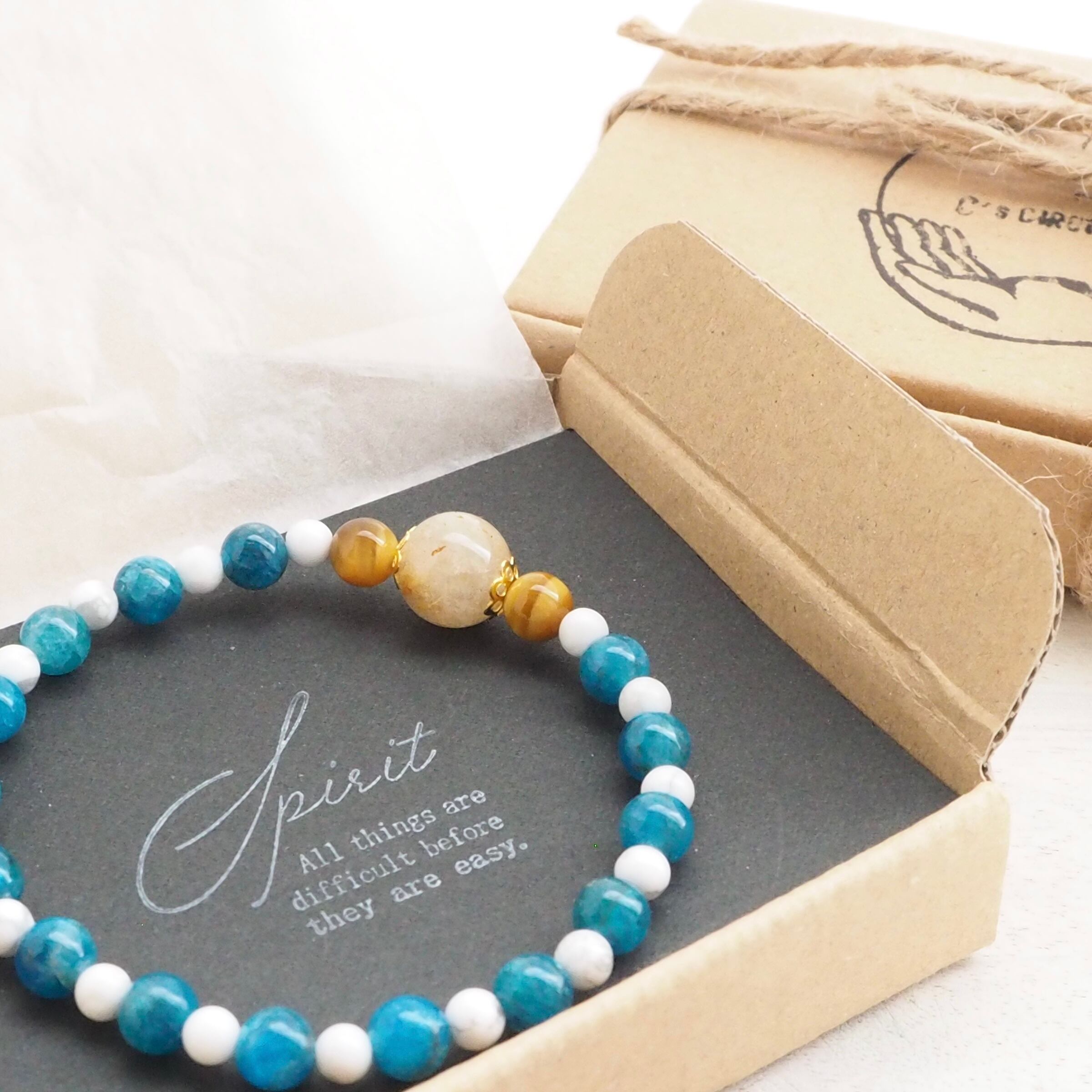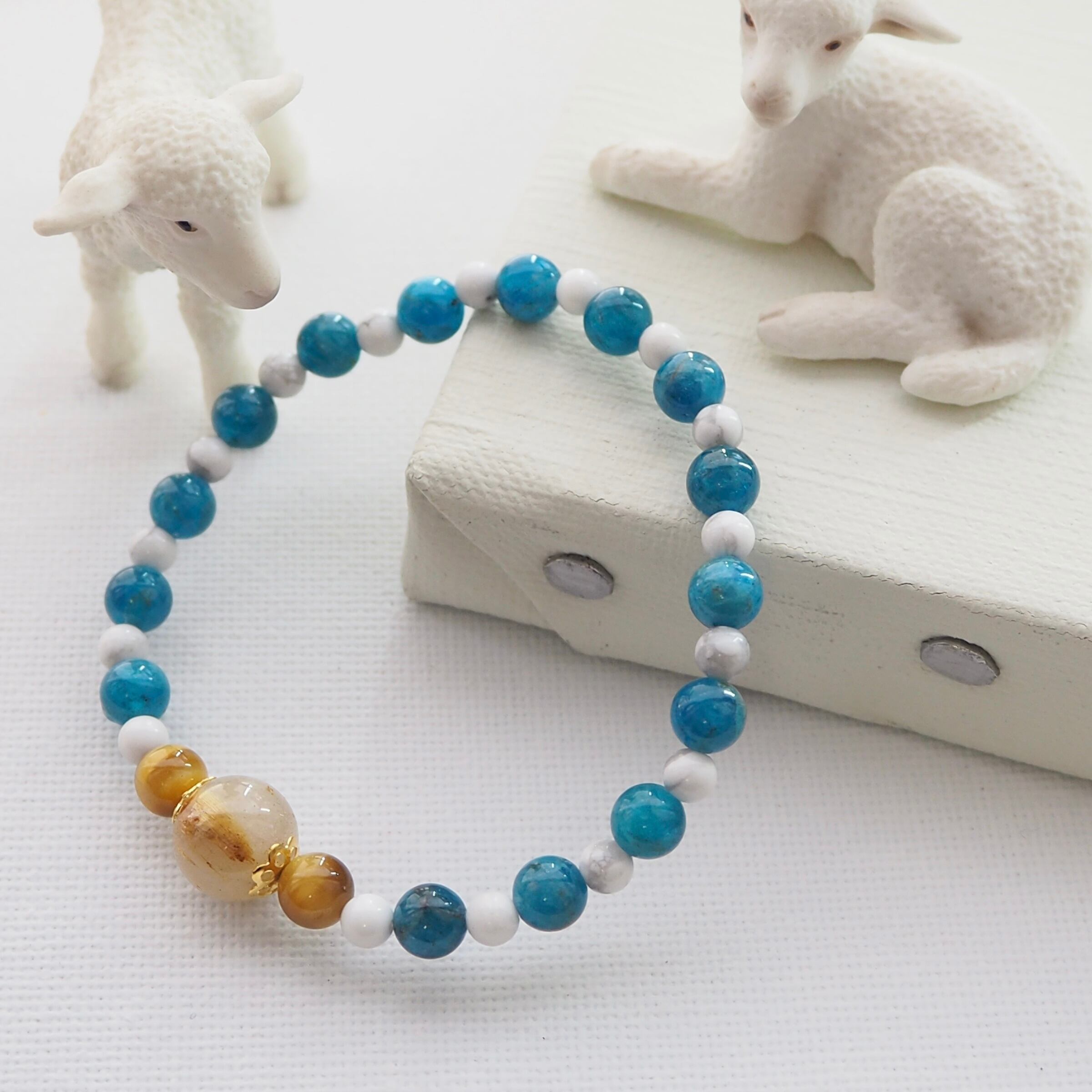 アパタイトのブルーとハウライトの白のコントラストがおしゃれな組み合わせです。