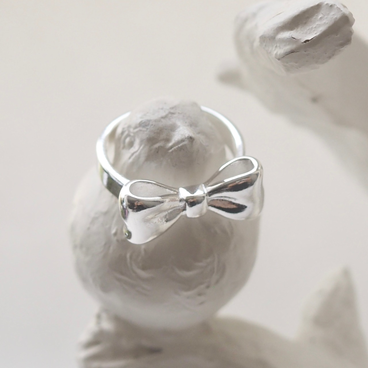 定番で飽きの来ないリボン結びのデザインリング、ゴールドとシルバーの2色。
